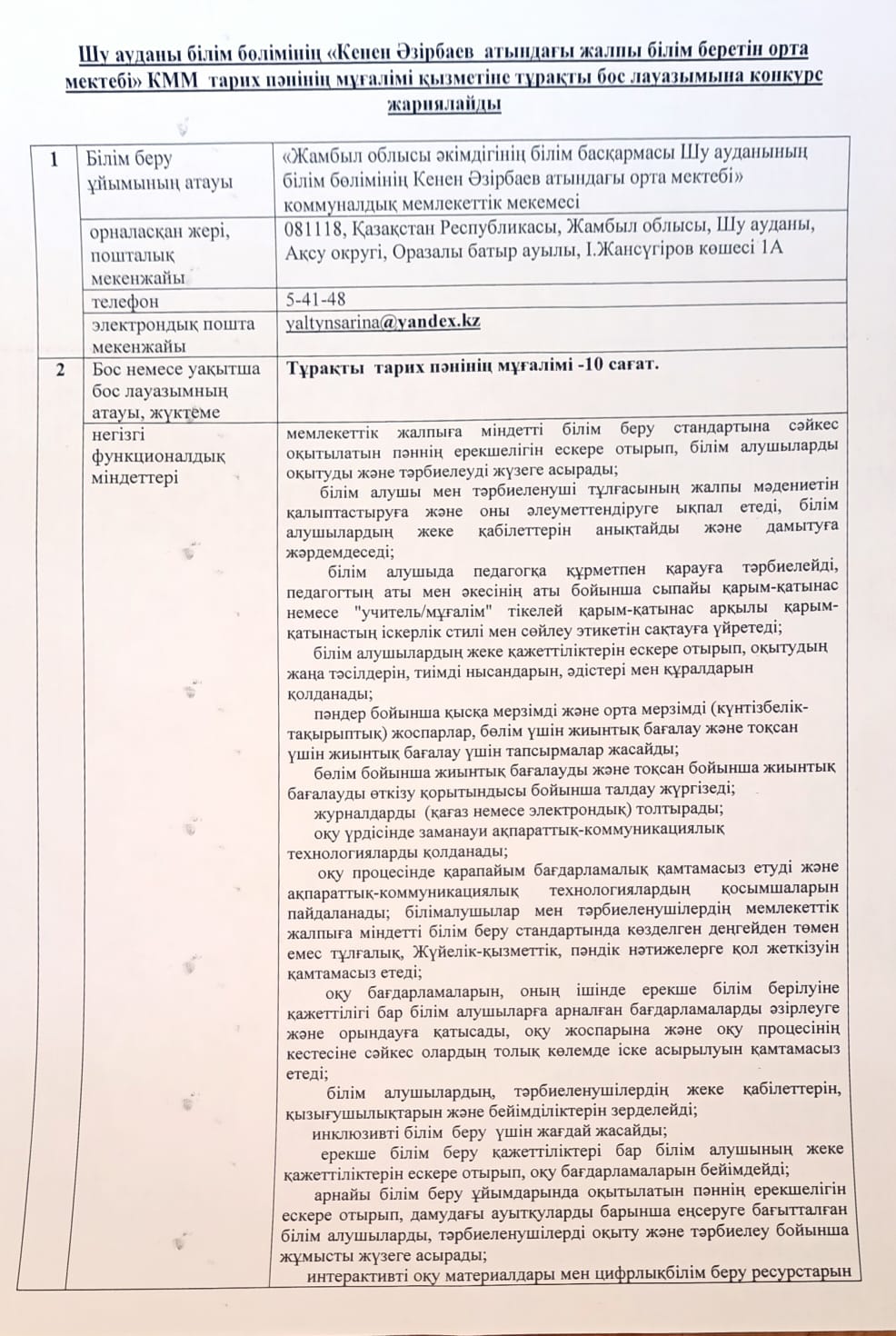 Тарих пәнінің мұғаліміне конкурс » Ы.Алтынсарин атындағы орта мектеп